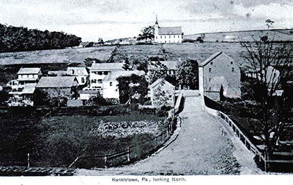 The largest village is Kunkletown which is named for Joseph Kunkle, one of the earliest businessmen and hotel owners in Eldred Township. Abraham Smith erected a grist mill in 1762 along Prince’s Run (Princess Run). In 1812, Phillip Hess ran a gun factory for the U.S. Army. The gun factory closed in 1830, and Samuel Berger and Abraham Blecker began a tannery on the old gun factory property until the tannery closed in 1877. Thomas Snyder opened a store in 1832, and the Kunkletown post office wasn’t opened until 1864, with Joseph Johnson serving as the first postmaster.