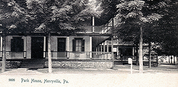 The earliest road in the township, built in 1825, connected Stroudsburg to Swiftwater and was known as the State Road. Today, the road is Route 191. Residents of Paradise Township had to travel to Stroudsburg where, “the usual necessities of life could be obtained.” That changed as the populous grew and in 1845, James Morgan and Edward Brown opened the first general store in Henryville. Four years later, in 1849, James Kintz opened a store in Paradise Valley. The first tavern was opened by George Bowman in 1838. The first grist mill was built by James Henry in 1835, and a small saw mill was opened by James Kintz in 1842.